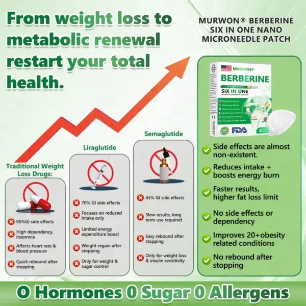 Transdermal Microneedling Technology๏ผBreaking away from traditional injection or oral weight management methods, the nano-microneedle transdermal delivery system provides sustained release of active ingredients for up to 8 hours. Moringa and berberine synergistically support appetite regulation and fat metabolism, making fat reduction more natural and effortless; NADโบ maintains energy levels and skin firmness. The gentle, stable formulation delivers a comfortable, non-irritating weight management experience.