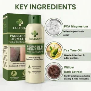 TAILEDENยฎ Natural Magnesium Herbal Psoriasis Sprayย has been clinically tested and is recognized under the skincare standards of the U.S. FOOD & DRUG ADMINISTRATION. It is specifically formulated to relieve a wide range of stubborn skin conditions.