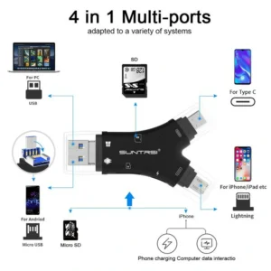 • 4 in-1 Multi-function SD Card–Four kinds of interfaces, so practically all your devices are supported. It is suitable for IOS, Windows OS, Mac OS and Android viewing, so you can easily save and delete pictures and videos. The SD card reader is convenient for use with hunting & trail cameras, making it an essential hunting accessory.