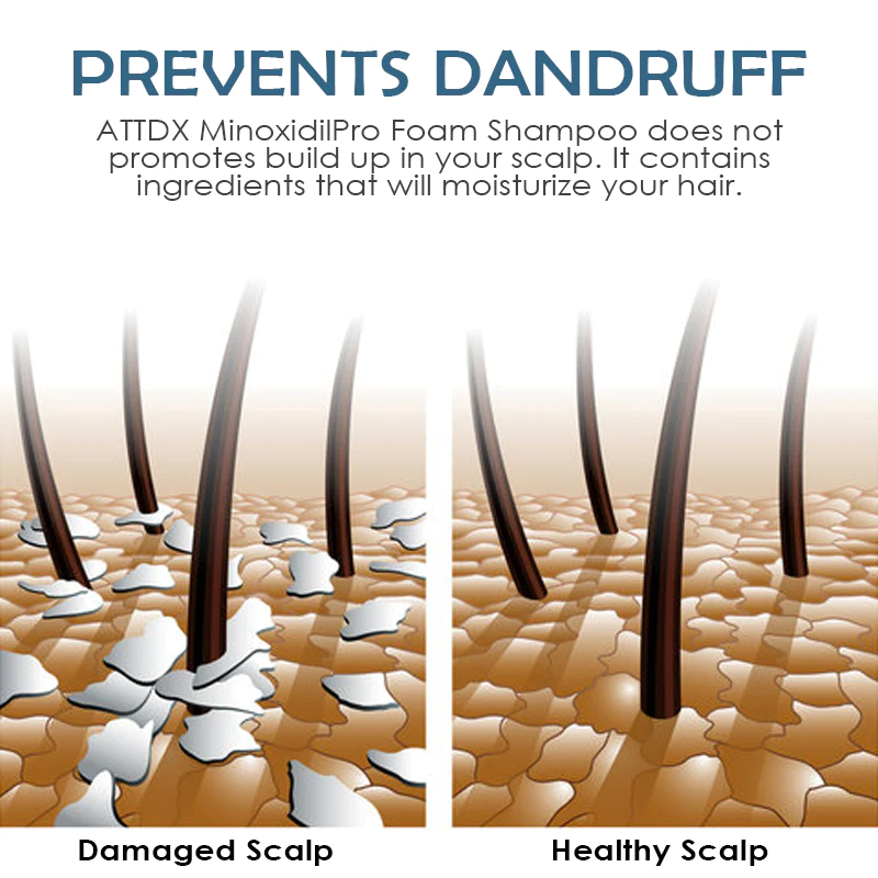 ATTDX MinoxidilPro HairRegrowth FoamShampoo is a breakthrough formula that provides advanced hair regrowth benefits. This proprietary formula combines the best of minoxidil and onion extract to help you achieve thicker, fuller-looking hair. The advanced foaming technology provides an easy way to apply the product directly onto your scalp while shampooing.