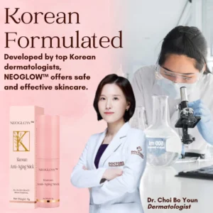 “NEOGLOW™ not only reduces the appearance of fine lines and wrinkles but also improves skin elasticity, firmness, and hydration. Its potent blend of antioxidants, peptides, and natural extracts protects the skin from environmental damage and promotes a healthier, more radiant complexion. The convenient stick format allows for precise application, making it easy to target specific areas of concern and incorporate the product seamlessly into any skincare routine. Whether used at home or on the go, NEOGLOW™ Korean Anti-Aging Stick is an ideal choice for individuals looking to maintain a youthful and healthy complexion, standing out as a superior skincare solution in today’s market.” – Dr. Claire Han Lee, Board-Certified Dermatologist