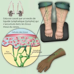 - Réduit l’excès de liquide lymphatique de 60 % en 3 mois.