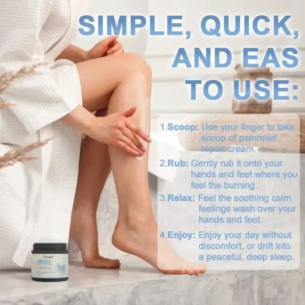 Using Magnesium Pain Healing Bone Cream is super easy. Just put it on your feet or legs where it hurts. The magnesium goes straight to work, helping to improve blood flow and get oxygen to your nerves.