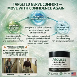 Designed to support daily nerve comfort and overall physical ease, ALCURAS® helps address common challenges associated with prolonged nerve irritation—such as burning, tingling, numbness, stiffness, poor sleep quality, reduced mobility, and daily fatigue. By supporting calmer nerve responses and a healthier local tissue environment, it contributes to improved comfort, steadier movement, and better quality of life over time.
