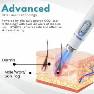 LOVILDS™ utilizes advanced CO₂ laser technology to target and eliminate moles, warts, skin tags, and pigmentation issues with precision. When applied to the skin, the device releases high-temperature electrical ion energy, which works by breaking down melanin and dissolving unwanted tissue at the cellular level. This process effectively reduces dark spots, blemishes, and skin growths without the need for harsh chemicals or invasive procedures. Unlike traditional treatments that may cause scarring or irritation, LOVILDS™’s ultra-pulsed mode ensures controlled, layer-by-layer removal, minimizing the risk of thermal damage while promoting natural healing.