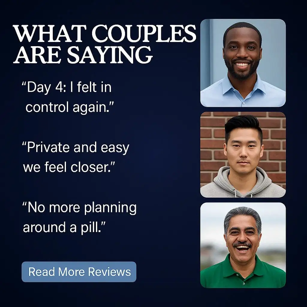 “I needed help with my ED and was tired of feeling anxious every time with my wife. After a few weeks using this device before bed, I started feeling relaxed and confident again. A month in, my performance and her smile both came back.”