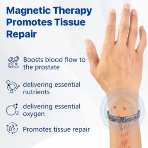 The bracelet also contains strategically placed magnets that create a magnetic field around the prostate area. This magnetic field improves blood circulation, delivering more oxygen and nutrients to the prostate, which is vital for reducing inflammation and supporting tissue repair.