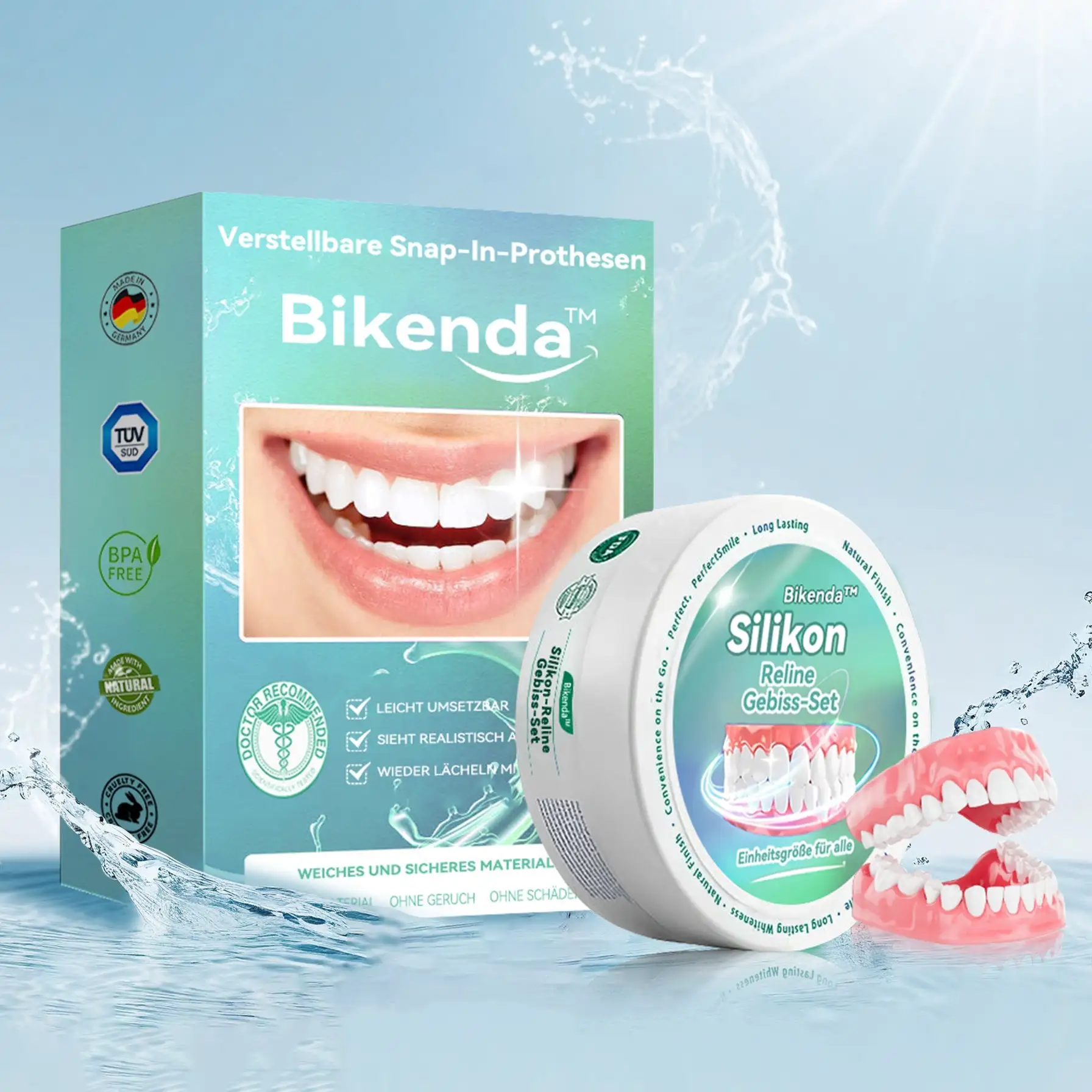 🌟 Sofort perfektes Lächeln : Verwandeln Sie Ihr Lächeln sofort mit dem 𝐁𝐢𝐤𝐞𝐧𝐝𝐚™ 𝑆𝑖𝑙𝑖𝑘𝑜𝑛 𝑅𝑒𝑙𝑖𝑛𝑒 𝐺𝑒𝑏𝑖𝑠𝑠-𝑆𝑒𝑡. Erleben Sie die Zufriedenheit, sofort eine makellose, individuelle Passform zu erreichen. Unser innovatives Zahnersatzset beseitigt die Unannehmlichkeiten schlecht sitzender Zahnprothesen und bietet Ihnen ein angenehmes und natürliches Gefühl, sodass sich Ihre Zahnprothese wie ein echter Teil Ihres Mundes anfühlt. Verabschieden Sie sich von wunden Stellen und Reizungen, denn das 𝐁𝐢𝐤𝐞𝐧𝐝𝐚™ Zahnersatz-Set bietet sofortige Linderung und ermöglicht Ihnen, Ihr Lächeln mit neuem Selbstvertrauen und Komfort zu genießen. Genießen Sie ohne Verzögerung einen nahtlosen Übergang zu einem besser sitzenden, komfortableren Zahnersatz.