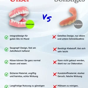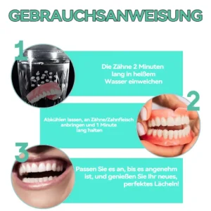 🌟 Einfache Passform, nahtloser Komfort: Freuen Sie sich über Zahnprothesen, die sich vom ersten Moment an perfekt an Ihren Mund anpassen. Unser hochmodernes Design sorgt für eine bequeme und sichere Passform und bietet außergewöhnlichen Komfort, der sich wie ein natürlicher Teil Ihres Mundes anfühlt. Sie können Ihren Tag selbstbewusst und ohne Beschwerden oder Verrutschen verbringen und ohne Ärger oder Sorgen essen, sprechen und lächeln.