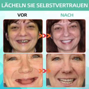 “Ich habe jahrzehntelang geraucht und mit der Zeit hat das meinen Zähnen geschadet. Ich habe mehrere verloren und die Karies hat das Essen und sogar das Lächeln schmerzhaft gemacht. Regelmäßige Zahnarztbesuche waren einfach zu teuer, also habe ich mir dieses Zahnersatzset zugelegt. Es ist ein wahrer Segen! Es sitzt bequem und ich kann endlich ohne Schmerzen essen. Außerdem ist es im Vergleich zu einer Zahnbehandlung erschwinglich. Ich wünschte, ich hätte das früher gemacht – es hat meine Lebensqualität wirklich verbessert.” – Maximilian Müller