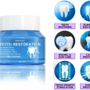 𝐃𝐎𝐂𝐓𝐈𝐀™ Dental Restoration Mineral Powder eradicates 99.99% of bacteria, eliminates bad breath, removes plaque and tartar, treats gingivitis and periodontitis, soothes toothaches, prevents and addresses cavities, repairs tooth enamel, encourages the formation of reparative dentin, and aids in the regeneration of lost teeth.