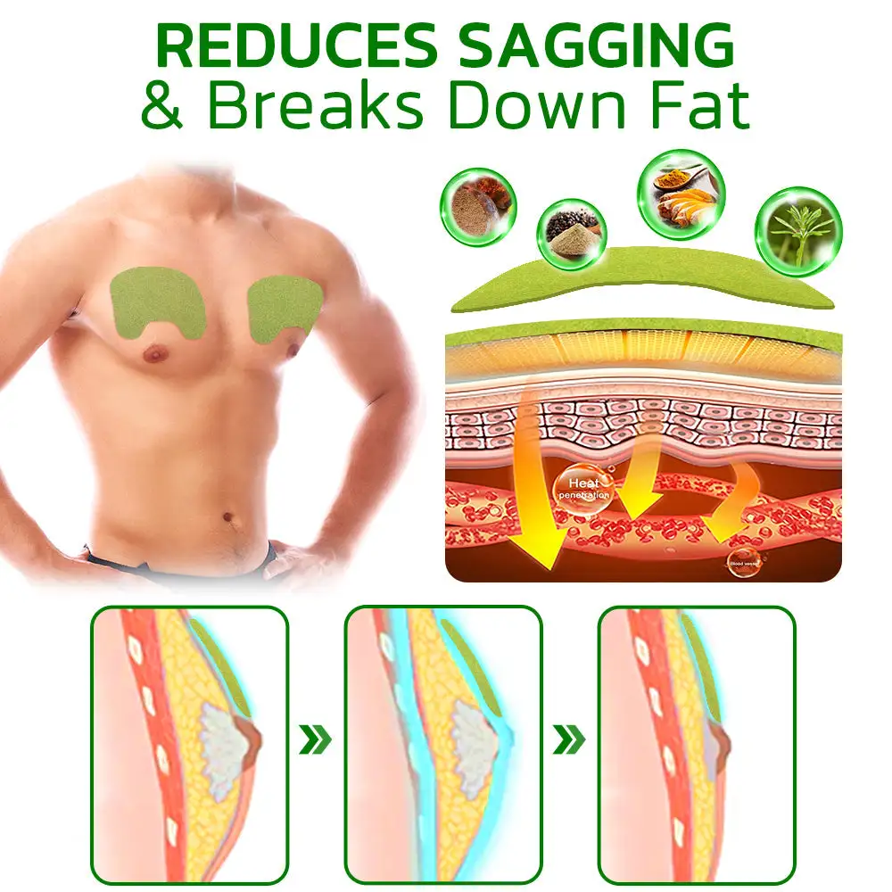 The patch generates a warming sensation without relying on external energy sources like electricity. Through its heat-trapping capabilities, it delivers multidirectional chest compression and acupressure stimulation, which promotes blood and lymph circulation. This enhances the treatment of gynecomastia, reduces fluid retention, and diminishes cellulite.