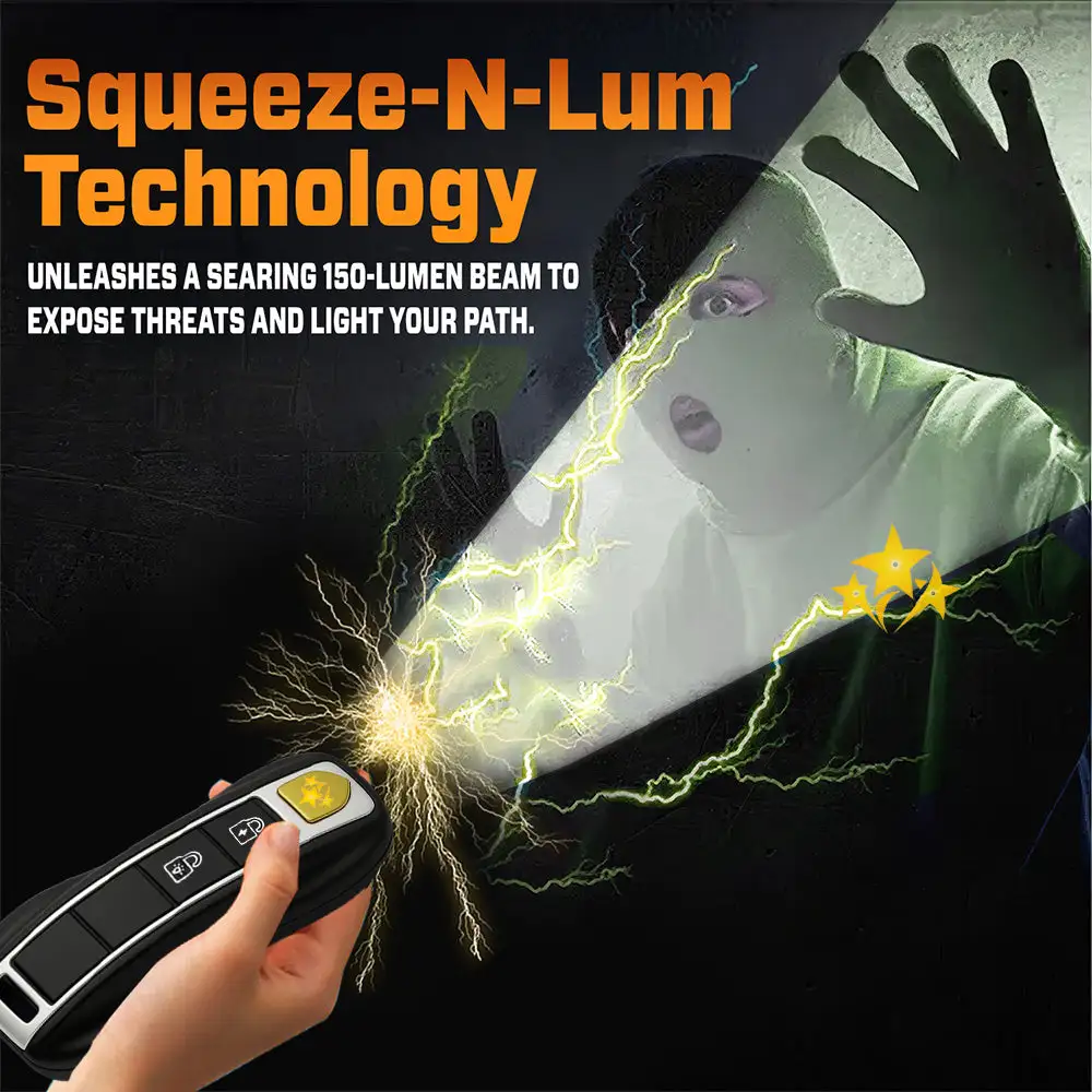 This compact car key-sized stun device delivers a jaw-dropping 57,000,000 volts – more than most mini stun gxns available today. Just firing it into the air is enough to deter most threats. If needed, its high-voltage electrodes can disable an attacker in seconds – even through thick clothing.