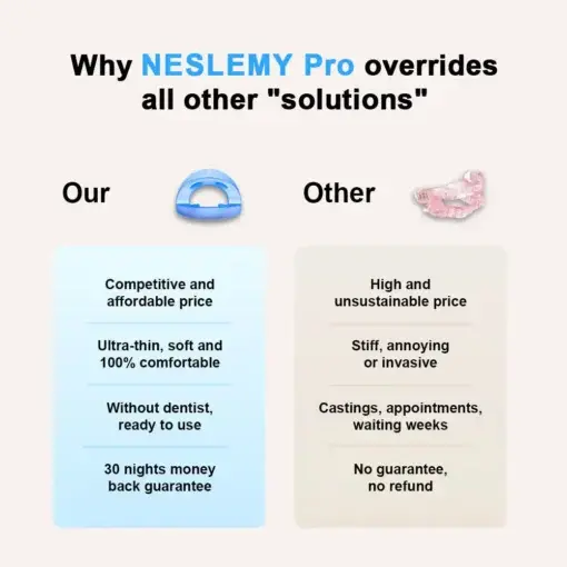 If past attempts to stop snoring have disappointed you, it’s not your fault.Other solutions don’t target the root cause: soft tissues collapsing in the throat.With NESLEMY™, you’ll enjoy better sleep, boosted productivity, a stronger immune system, and improved relationships. It even reduces the risk of heart disease and stroke!